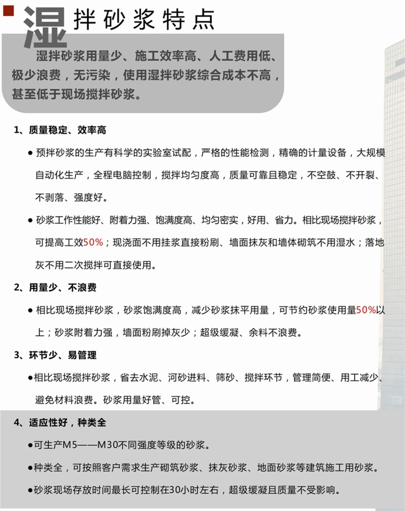公司總投資5000多萬(wàn)元,占地3萬(wàn)平方米,擁有HZS-180德國(guó)進(jìn)口攪拌機(jī)自動(dòng)化混凝土生產(chǎn)線兩條,整個(gè)生產(chǎn)流程均為電腦化、自動(dòng)化、標(biāo)準(zhǔn)化,配套“三一重工”、“中聯(lián)重科”先進(jìn)的混凝土輸送設(shè)備8臺(tái),運(yùn)輸攪拌車(chē)30余臺(tái),具有年產(chǎn)混凝土80萬(wàn)方、濕拌砂漿30萬(wàn)噸的供貨能力。通過(guò)綠色升級(jí)改造,建成封閉料庫(kù)5000多平方米、生產(chǎn)車(chē)間800多平方米,加裝噴淋、隔音、收塵、砂石分離機(jī)等設(shè)施,達(dá)到了國(guó)家預(yù)拌混凝土綠色生產(chǎn)JGJ/T328-2014星級(jí)管理標(biāo)準(zhǔn)。